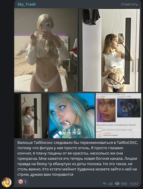 Просто бля клоунада на ровном месте, так всегда. Мыльный беспочвенный пузырь раздувается без остановки, разве лишь потому, что Тайбисокс очень красивая и хочется по-злому пофантазировать, облив грязью, чтоб хоть как-то почувствовать себя вровень. Классика.