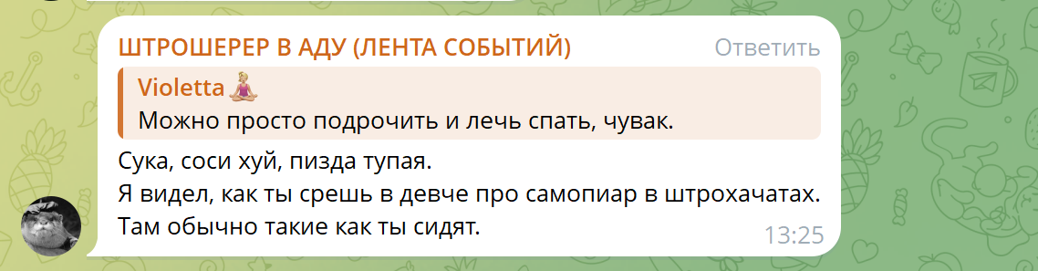 Мы - творческая элита, историки, литераторы, искусствоведы, мыслители. А ты всего лишь жалкий куколд, погрязший в ненависти к себе и всему миру, проебавший здоровье, просравший жизнь на починку форсунков и деньги на хлебушек для мужа бесноватой интернет-фрички. Несчастный ты болван