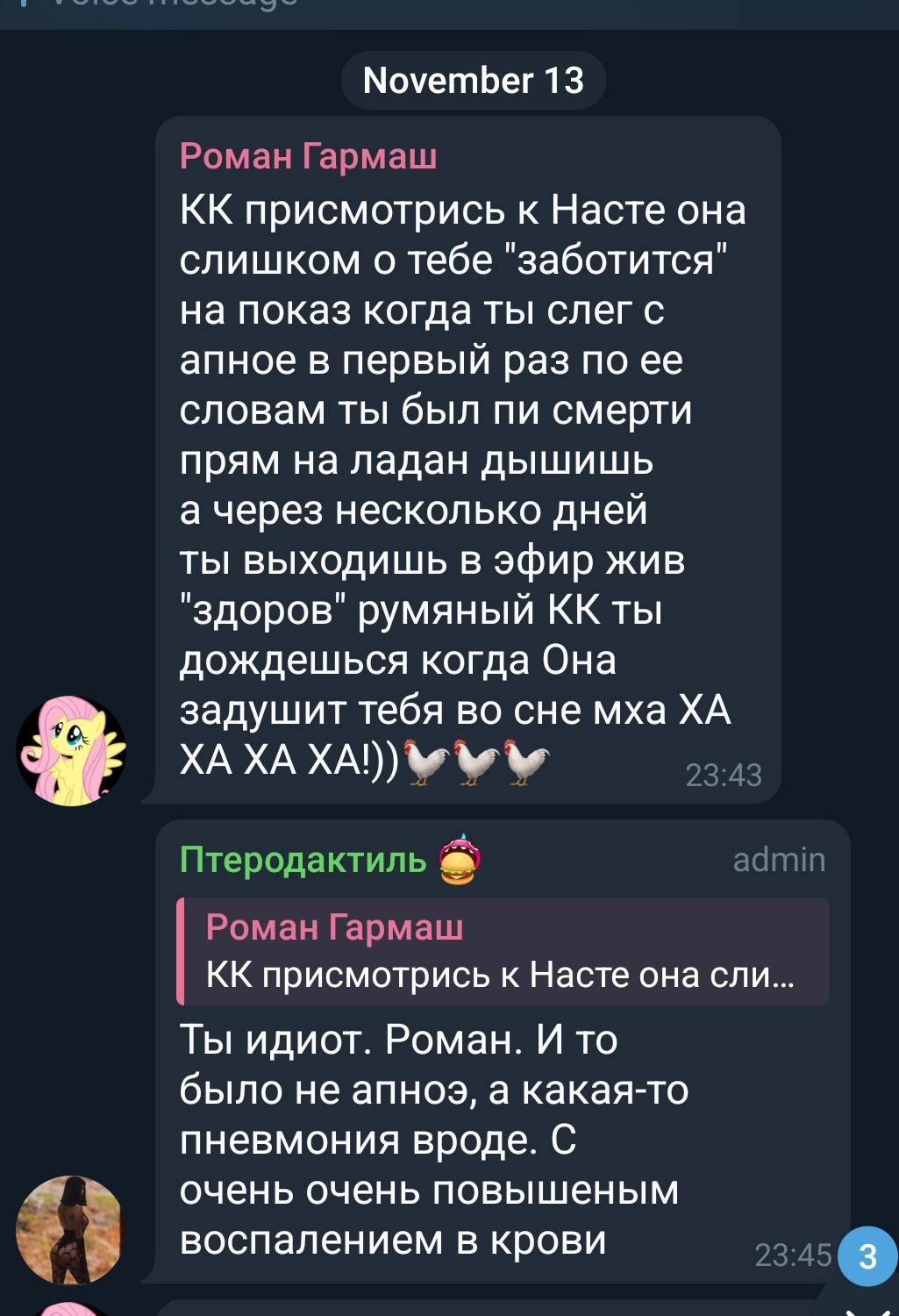 Кстати, а вы не боитесь что кадавр попросит Друже напрячь свои связи и с вами разобраться? Может не нужно в ирл гадить человеку, это как-то не по людски что-ли. Человек лечится, а вы ему гадите, зачем отзывы в клиники плохие писать то? Реально мерзкий поступок же, надо знать грань уж, просто угорать над ним без влезание в ирл.