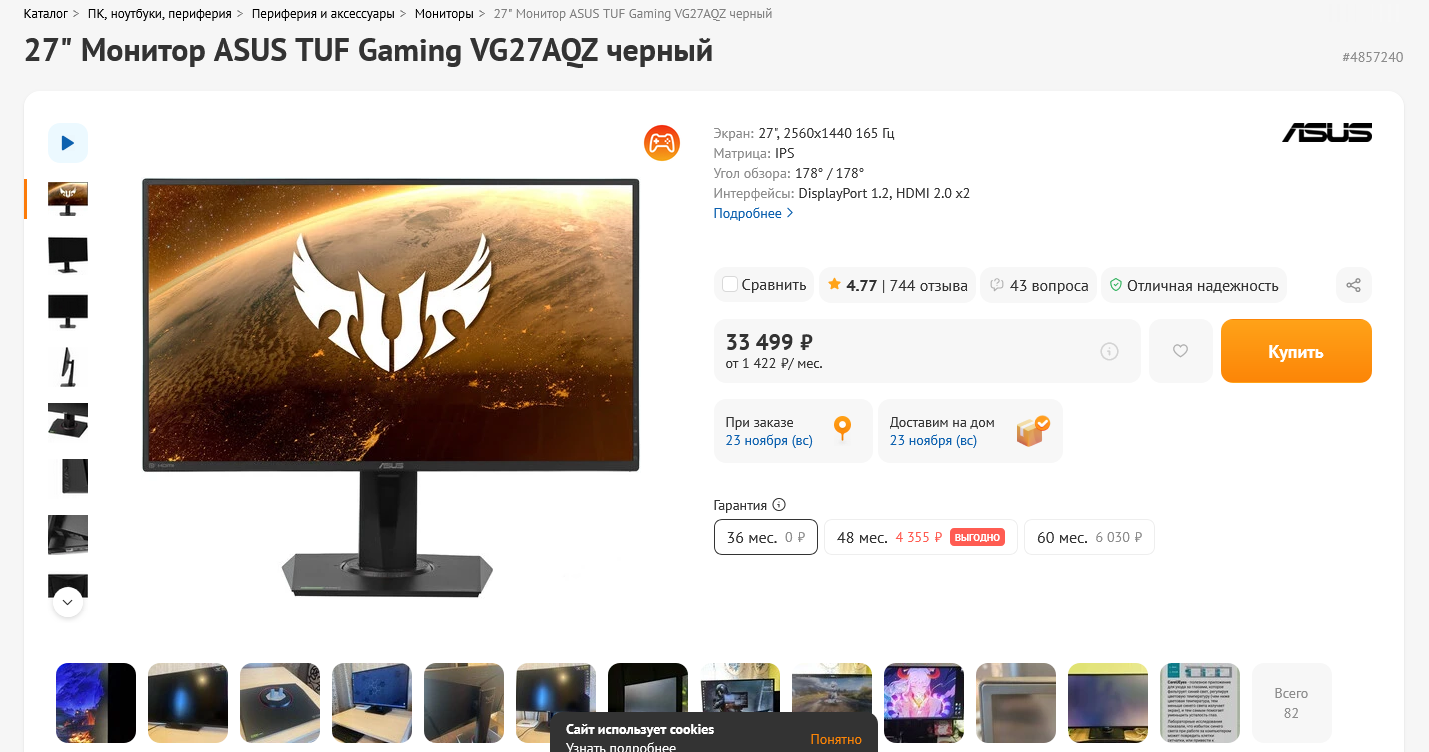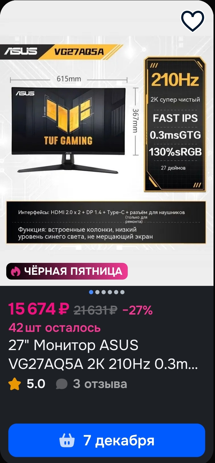 Заказал манитр asus tuf 2к 210гц 27д. Теперь у меня флэпджек на руках: карта + бп + манитр и все от asus tuf. Жоско да? Жестоко я бы скозал. Ппрросто жескач. Ттттяу тяу! 😎