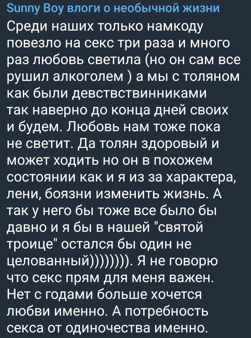 >>25597313 Медведь обычный нормис с шизой, полу-гопник. Тот самый пацанчик со двора, который бухал с 12 лет. Не думаю что для него прям проблема была бы найти быдоватую тёлку-ровесницу на поебаться.