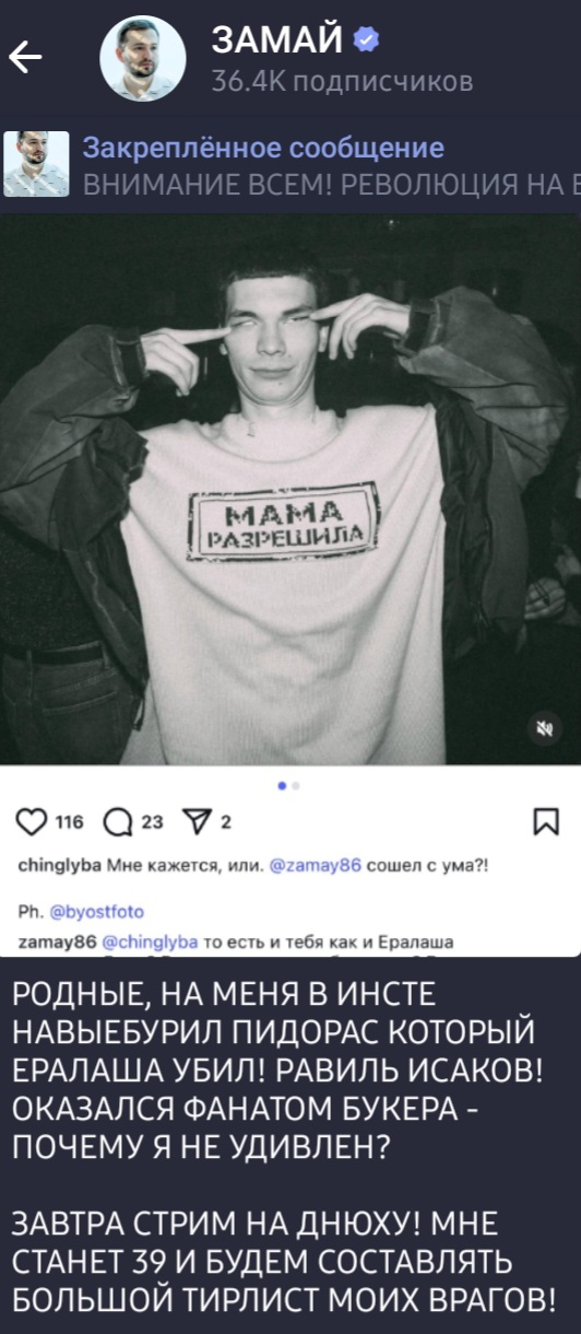 Вы тоже в шоке, что он был в Дубае в то же время, что и его любимый Камшот и они заигнорили друг друга там чет? Ну или виделись и просто по какой-то причине нихуя не слили? Шкерится теперь, как и с Тузиком? Ну и че к чему ваще нах такие тайны опять на ровном месте, как будто в ссоре или перестали общаться, при этом с Зулей постоянно кружки у него были и есть...