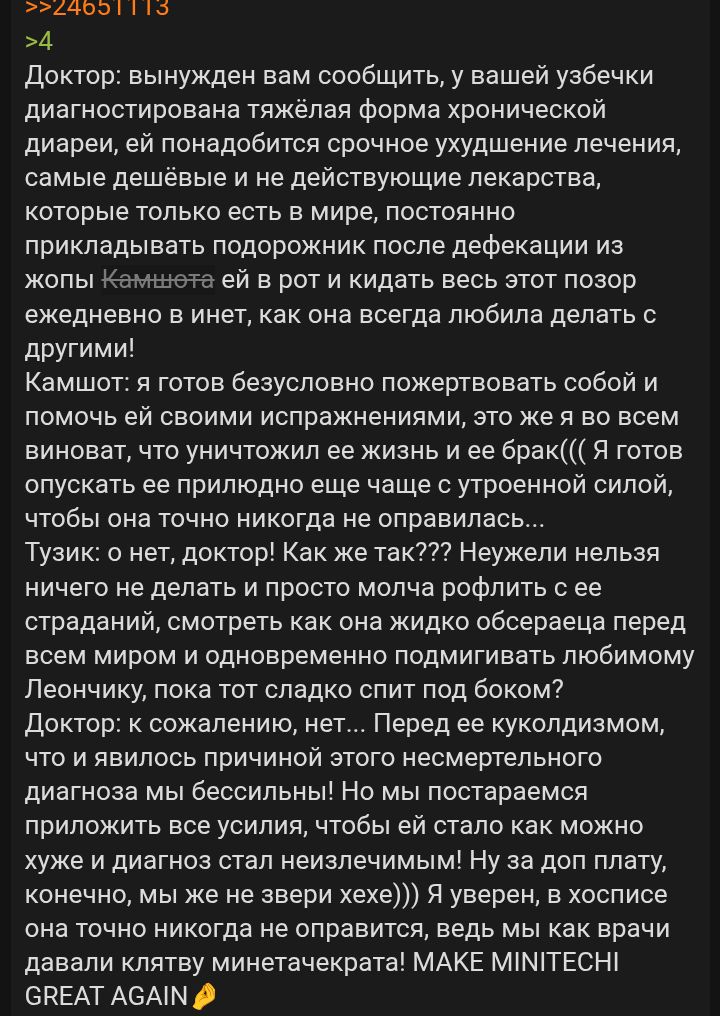 4) Взять ее замуж по закону придётся, она два слова связать не сможет, он будет всем пиздеть, что как увидел, влюбился в ее чистоту и простоту и блаблабла и даже если не поверят, то хуй кто доебеца после ребенка! Можно ваще никогда не разводиться и жить в свое удовольствие, особо не прячась, она будет думать, что с ее братом и прочими у него такая крепкая дружба🤭 В отличие от блядоузбека с претензиями и всю жизнь так жить, она и слова против не скажет и еще сама благодарна будет, чтоб взял))) Она же везде всем ноет, что ее не берут замуж, вот как раз убьют двух зайцев сразу... Хотя бля, у нее же не было парня, можно ли родить, будучи целкой? Один раз таки Камшоту придется пострадать с ней наверно и взять на себя эту ответственность((