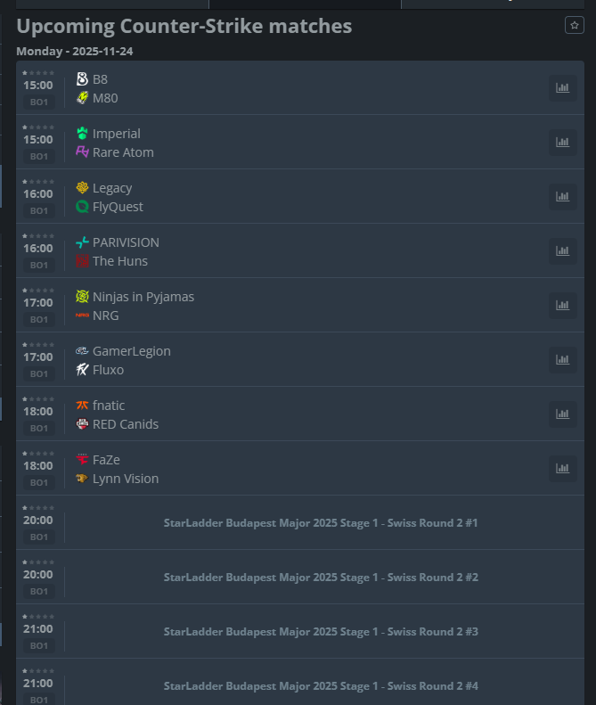 >>25621233 На самом деле не очень расписание. Там когда БО3 матчи начнутся они будут начинаться в 17 00, что довольно странно, ведь обычно на таких туриках первые матчи начинаются 11 00 - 13 00 чтоб успеть провести все матчи и вероятно если матчи будут затягиваться, то они будут идти до 2-3 ночи
