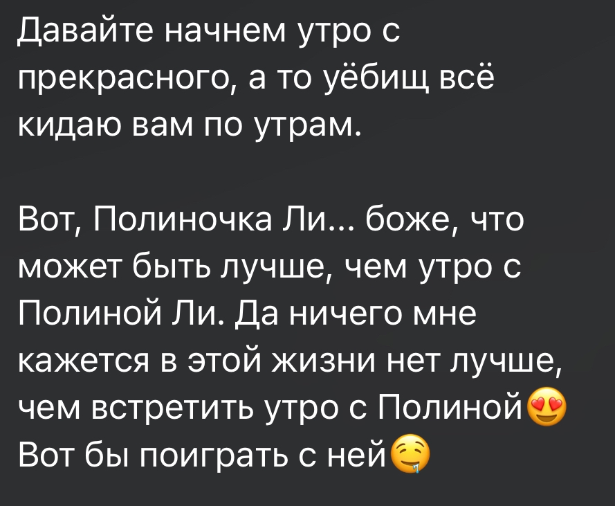 >>25639083 Вот пазл и сложился - это на бусти ей заказали. Ну потому что кто еще, черкаш не сливает и за это его и любят, полуебок тоже бы не слил, бывший парень тоже. У нее попросили что-нибудь погорячее и она сделала за несколько десятков тысяч. А потом этот человек пришел сюда и слил, потому что он не ценит габи и она для него очередная потаскушка, которых тысячи на онлике и бусти.