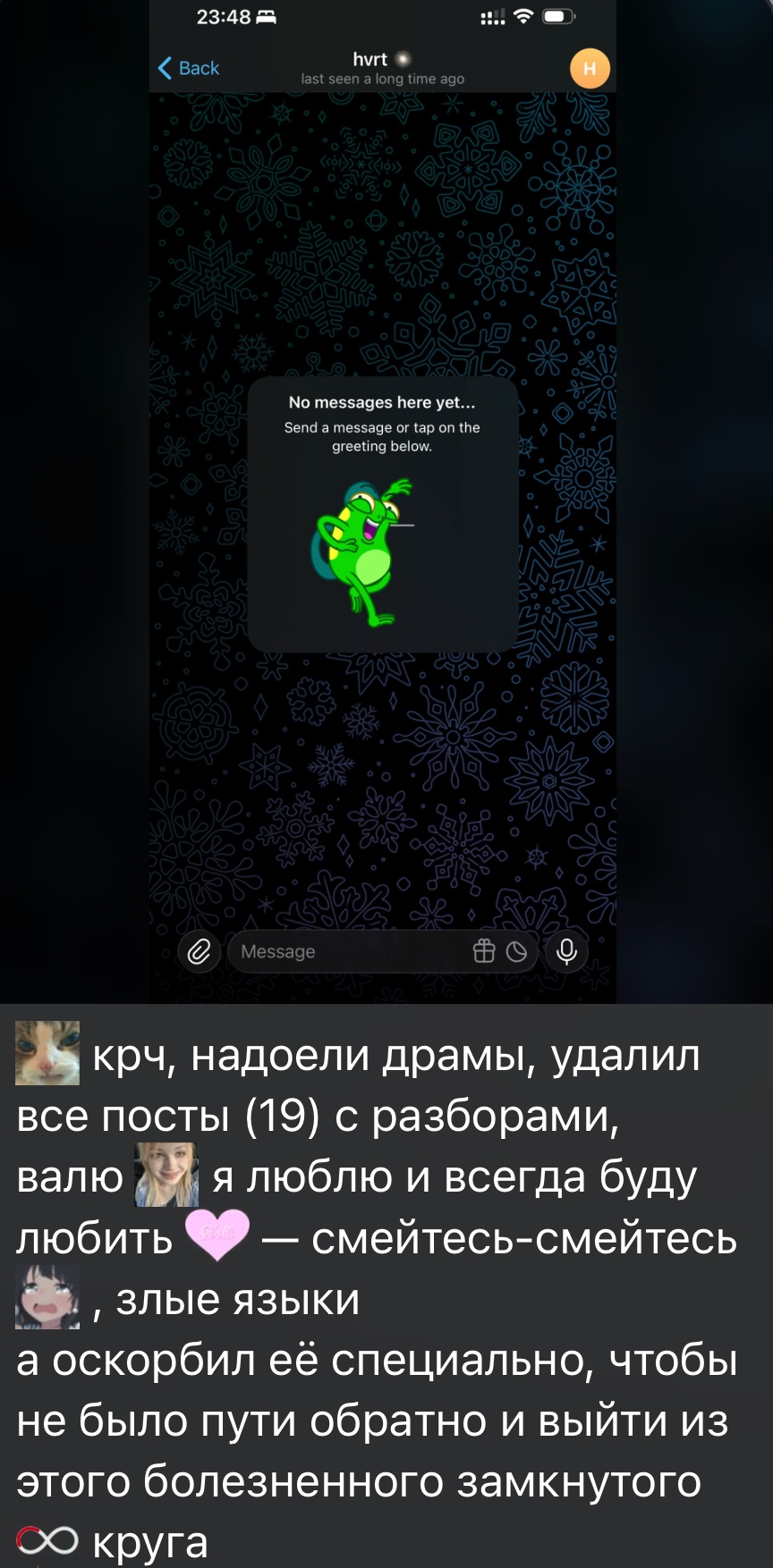 Какие у нас итоги в 2025 году? Габи полностью окуклилась и больше не хочет иметь отношения к треду, перестала стримить. Лори наоборот говорит что читает и ей прикольно, какую хуйню тут придумывают. Алкаш все-таки спустя 8 лет стриминга доконал отца. В треде все меньше и меньше народа из-за шизоидных срачей, устраиваемых всего одним агрессивным додиком, ручной собачкой чмарика.