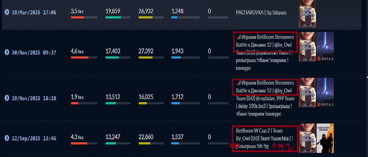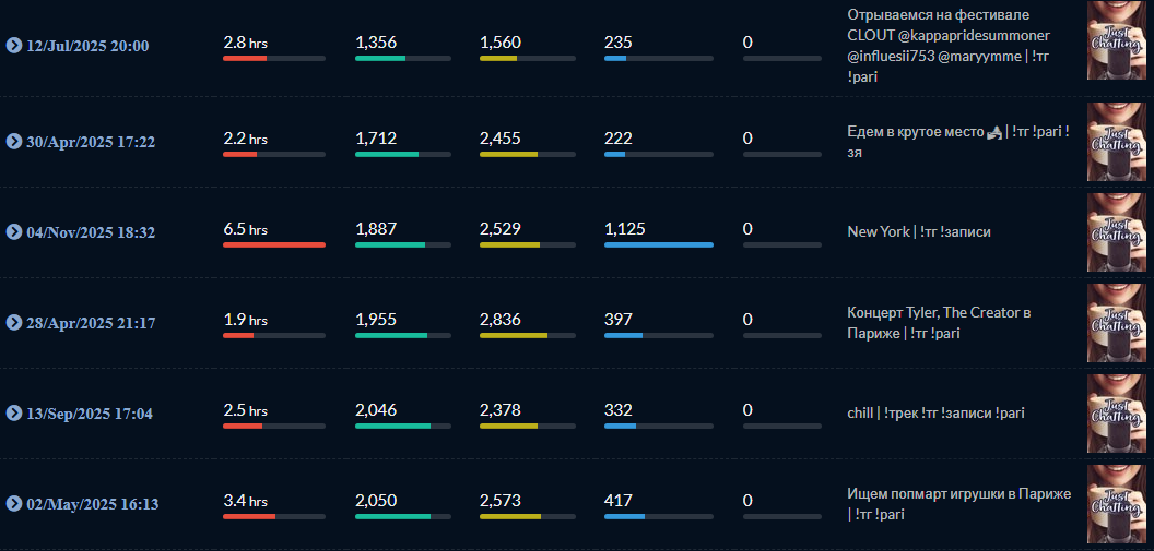 Ну ты на твичтрекер хоть зайди и посмотри что она стримила