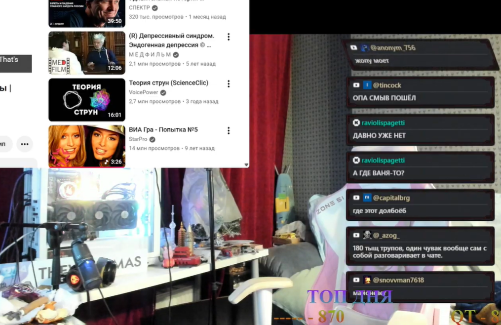 >>25681309 в чате стрима: илюх я твой фанат, илюх возьми в КС, илюх гоу в друзья в стиме на дваче: сдохни чмодье ебаное, я те репортов накидал на канал тебе пизда