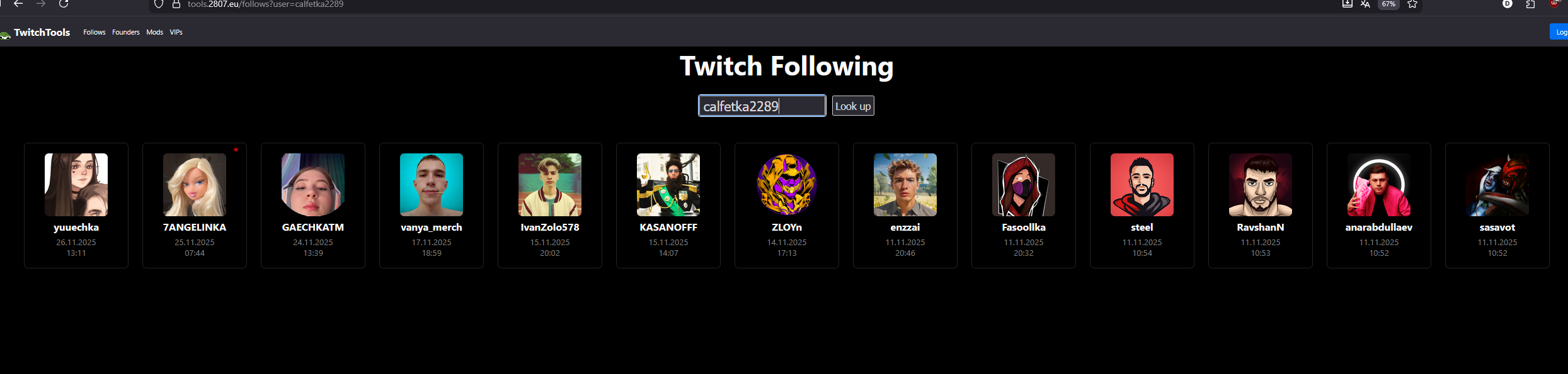 >>25655416 >калзай накрутчик 99% вот только зашел к нему в чат и клацал юзеров с чата, такую историю наблюдал, дата регистрации аккаунта всегда совпадает с датой фоллова калзая. Возможно просто совпадение или это аудитория с тт пришли завозики смотреть у анала заваркина тоже такие имеются