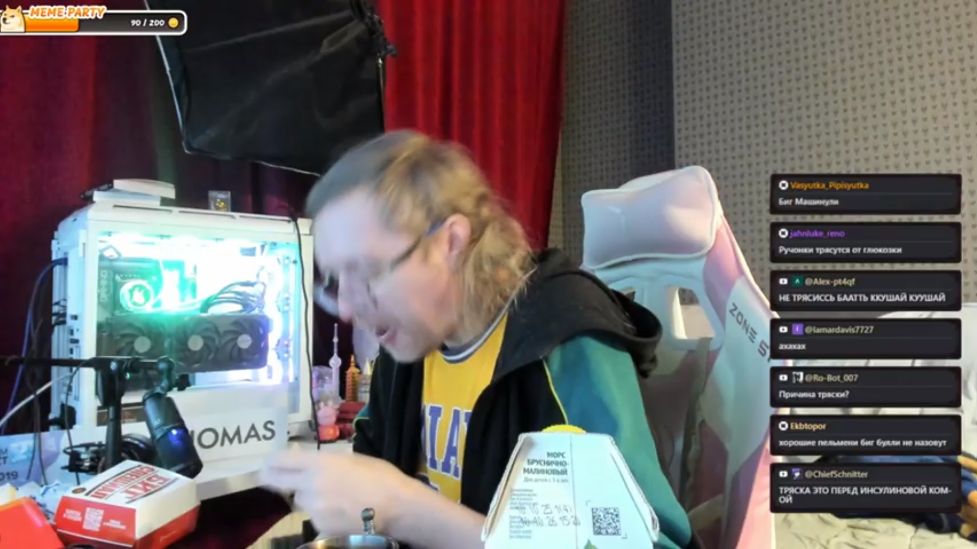 даун... 10к за час сидения на стул - это все равно много. Бомжу нужно 4-5к за стрим,чтобы в конце месяца иметь 80-100к. Только х___мрази могут говорить, что это не деньги. Бомж просто жрет перед камерой, смотрит YouTube и играет в игры, при этом имеет хорошую зп челевека, который работает 8x20.