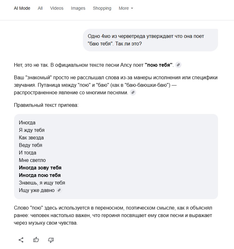>>25691580 Обосрался? Вот именно так же ты и Вовика не можешь отстоять, только рвёшься. Алсу поёт "баю тебя", это словарный и логический факт, и второго силокея ты на этом не сделаешь. Обтекай, 4мо.