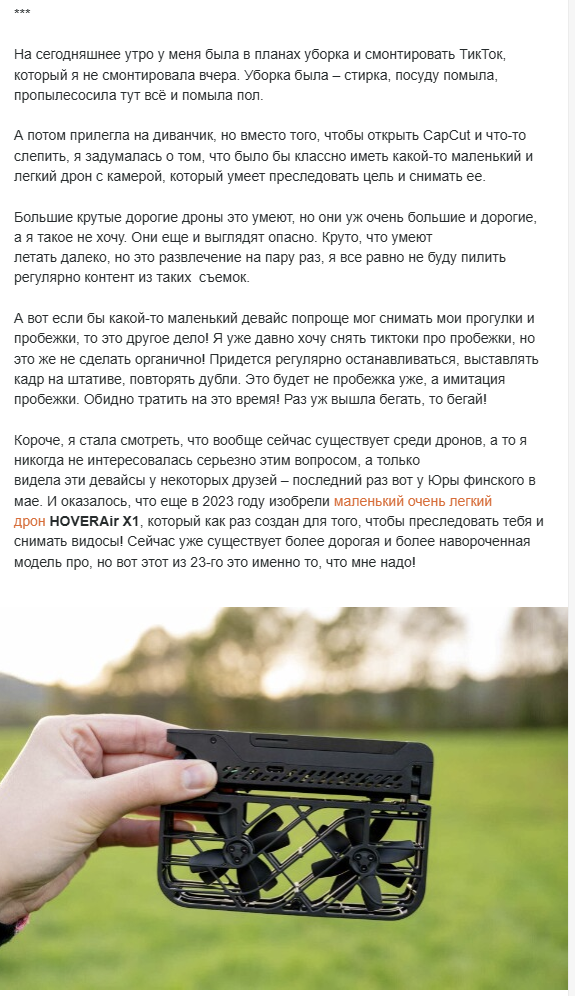 >>25697920 У меня всего лишь один вопрос: нахуя она снимает свои пробежки? Ей снимать их надо или бегать? И получается что чтобы БЕГАТЬ НА ПРОБЕЖКАХ ей нужна летающая приблуда с камерой?