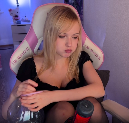люблю моменты когда валя ходит в туалет посреди стрима, так это заводит. я представляю как мелкие капли мочи остаются на юбочке и трусиках а потом она садится на стул и продолжает для нас вести стрим, а если еще боком уходит за дверб скрывая свою большую попочку- так это все у меня сразу сносит голову. мой любимый стрим в обтягивающем костюме рэи когда она постоянно вставала и показывала здоровенную попку и широкие бедра