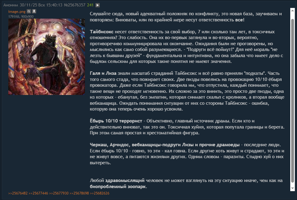 >>25694266 Я тайбисокс не оправдываю тут, она втянулась в хуйню с хуевым человеком а потом еще и нашла максимально хуевое окружение для того чтобы с этим справиться, все это лишь последствия ее выборов Видимо у нее нет чуйки на людей