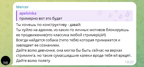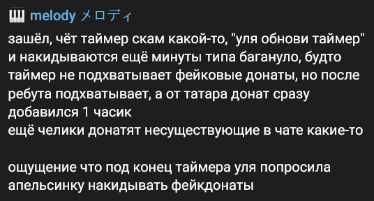 >>25709317 >Во первых там реальных было 30к+ Вряд ли. Он недавно говорил, что на сплошных лудостримах растерял аудиторию и репутацию. Здесь в ГС называет 30к онлайна бесстыжим https://t.me/maddysontg/5250 Когда признался, что 200к это его "бизнесмены", было 213к онлайна. Он пожаловался, что никто не помогает, и тогда уже онлайн начал расти до 255к. Позже уточнил, что накрутил 210к. Когда попросил писать в чат "заза" вместо "база", за 2 минуты это сделали 500 уникальных юзеров. А тут в клипе рассуждает о своих 7к онлайна, надеясь на буст от Дианы. Вчера он её вспоминал в мягких тонах, демонизируя Слэй. Думаю, в пике было до 10к живого онлайна. Об эффекте дальнейших нарезок судить не могу, но он бы явно зависел от свершений Ненормовой, как при любой коллабе. Какой стресс вызовет осознание ответственности и какой контент можно выдавать в таком состоянии?
