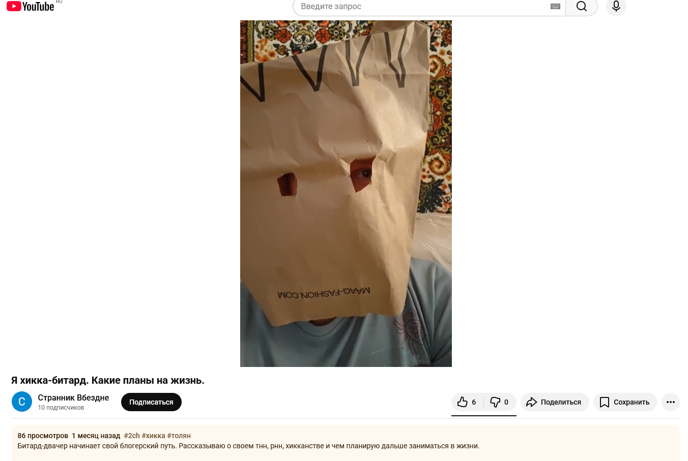 Блог на Youtube - главное занятие Толяна, которое приносит ему несколько тысяч рублей в месяц. Толян записывает обзоры на еду, летсплеи, истории из жизни.