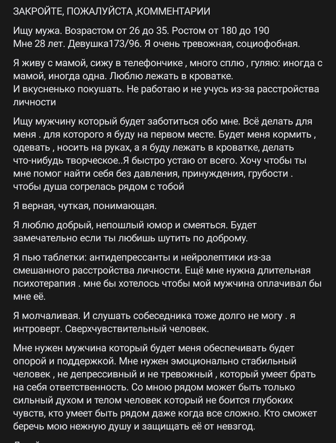 у меня такие же требования, только к женщине, это мой базовый минимум