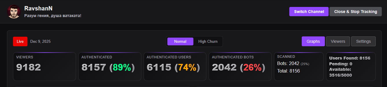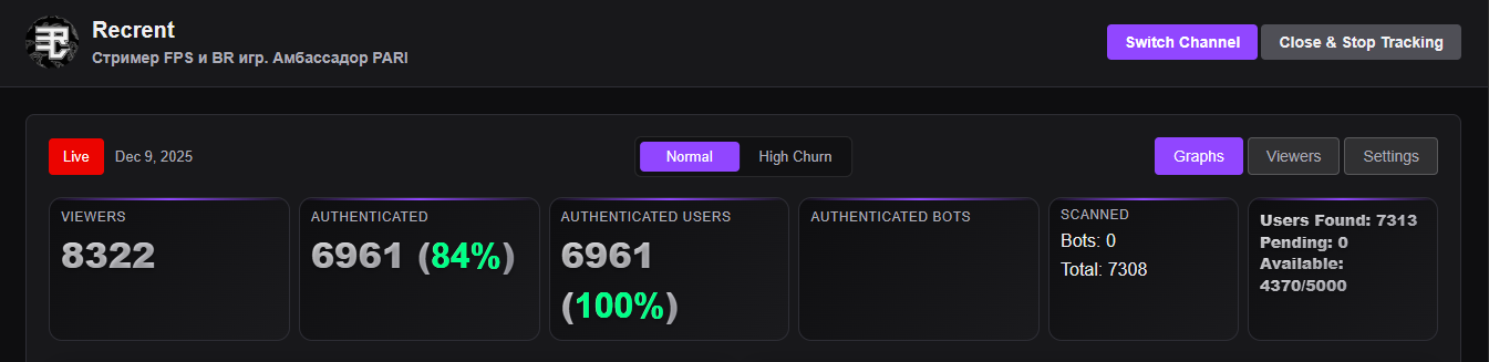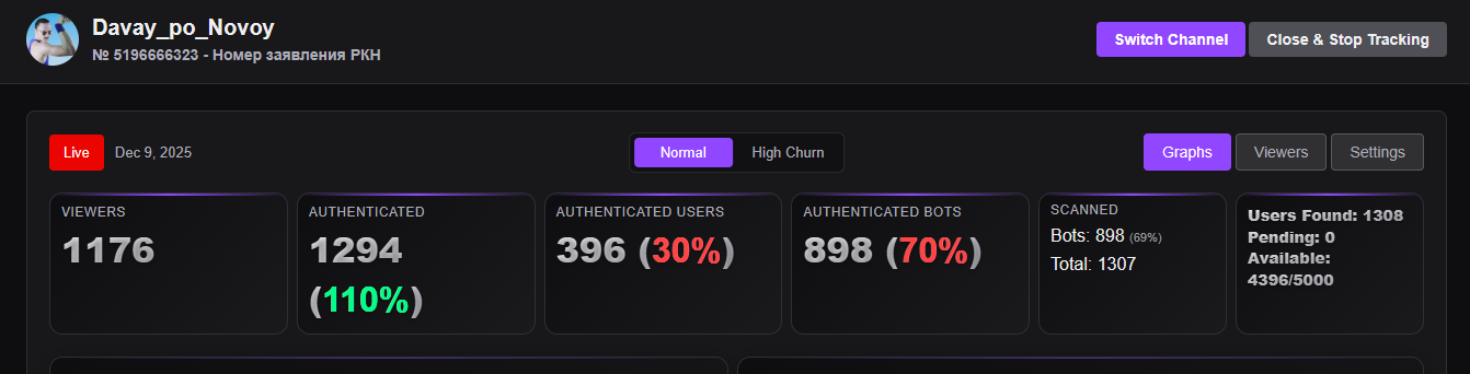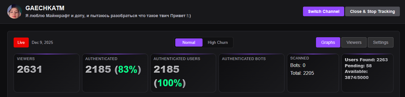 >>25752158 он зареганных проверяет. принцип работы такой, что он сортирует аккаунты находящиеся на стриме по дате подписки и если их слишком дохуя в один месяц и аккаунты пустые он причисляет их к ботам. суть в том, что у стримеров, у которых расширение выявило ботов(выше скрины), аккаунты зареганы примерно в один год и в один месяц(декабрь-январь 2022) вот это странная хуйня