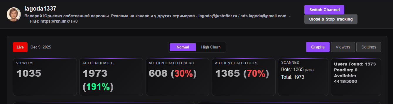 >>25751640 Есть и такой процент людей, особенно те кто смотрит стримы с телека, но таких мизерное количество, в основном реальным людям мазолит глаза значек о входящем сообщении на твиче, но есть и человек 500 которые просто игнорят, и 2000-3000 у которых закрыта личка, но на 50 к онлайна с накруткой это такой мизер