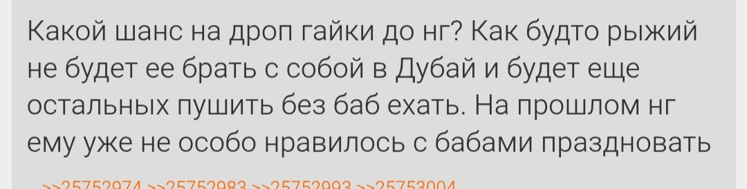 Год назад на часик? Каждый раз когда они ходили куда то это было максимум на час полтора и рыжий бежал домой быстрее в дс, нахуя отрицать это все я хз. Повторюсь еще раз рыжий сам открыто говорит об этом всем и гордится этим