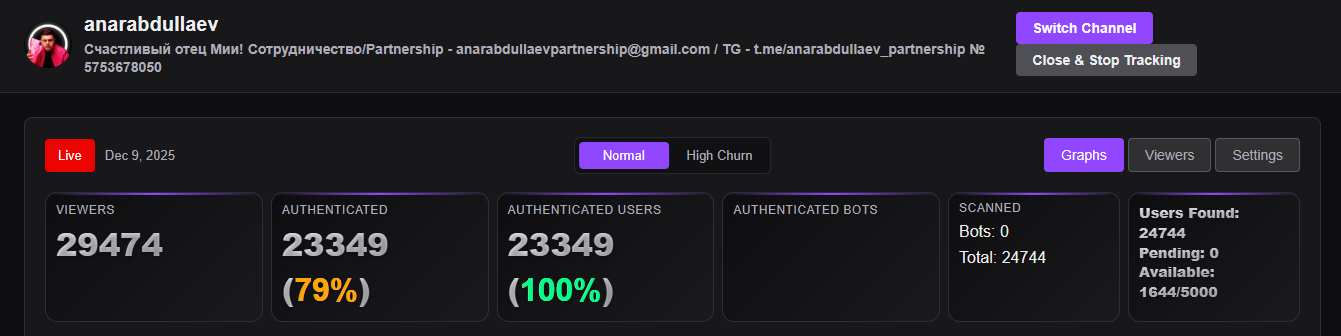 Знаешь что интересно, Ольга фруктозка часто подрубает на втором канале, и у нее 2 дня подряд была накрутка, потом отключалась и становилось из 2200 онлайна -> 150. Поймать бы момент с её стримом, интересно что напишет эта фигня