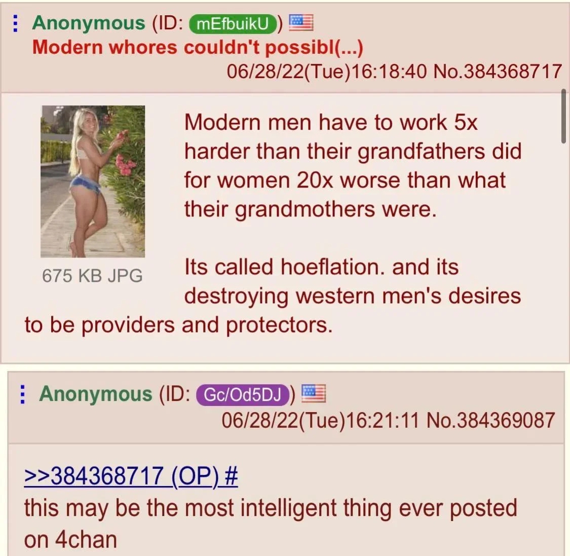 >>25751750 >>25751786 Нормисы плез - женщина одно из самых недопустимых вещей в мире сейчас. Тебе даже бомжиха откажет просто потому что курс пизды на небесах