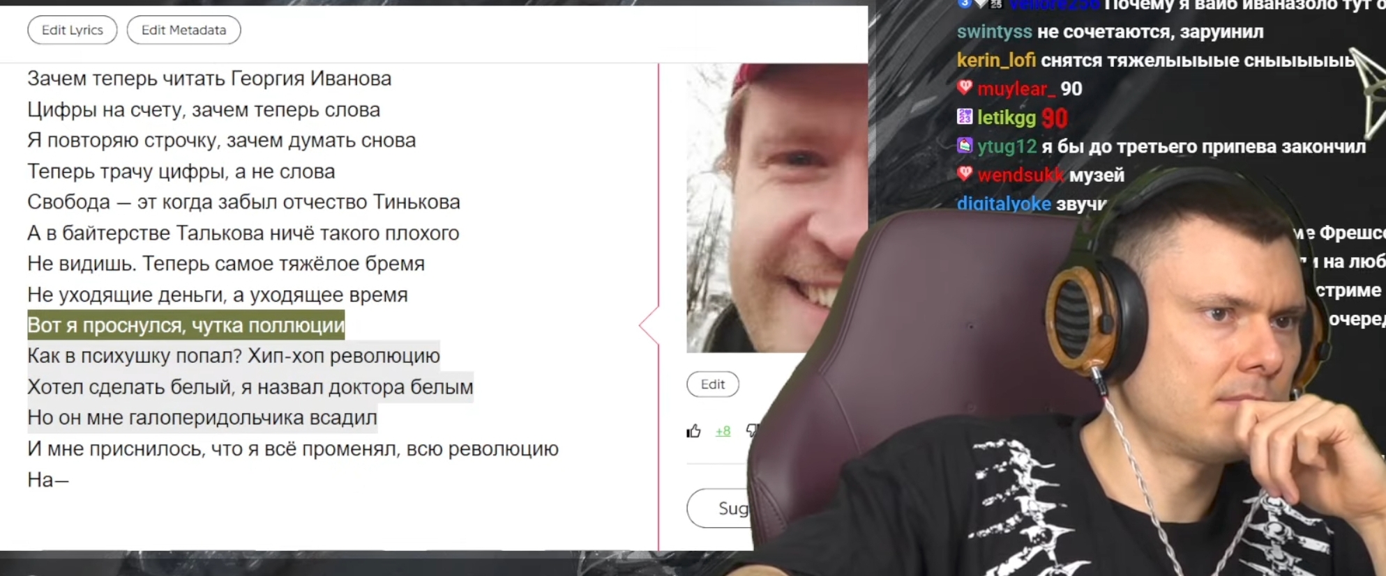 >>25724585 Да я смотрю еще. Вообще ощущение что фломчик тред почитывает. Сначала упомянул что жопич через как и будто постоянно панчит, о чем выше писали, потом сравнил прослушки жопича с иваном золо. Сейчас на треке другой белый вкинул типо судя по тексту славе не близки беспорядочные половые связи, ну слава то ведь не замечен в изменах был, не знаете?))) думаю дальше на айзе и гуф как раз про айшу начнет говорить
