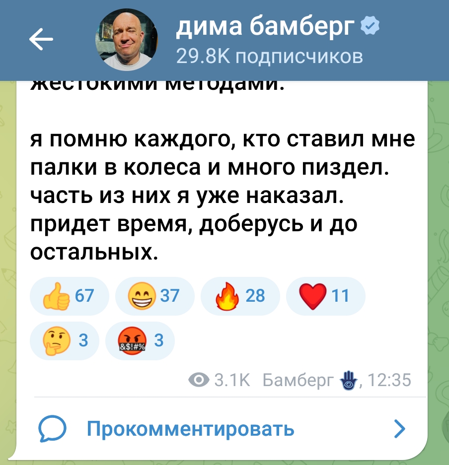 идёшь такой по улице какой-то грубиян тебе харкает в лицо и ты молча идёшь дальше, потому что ты отвечаешь только тому у кого много подписчиков..