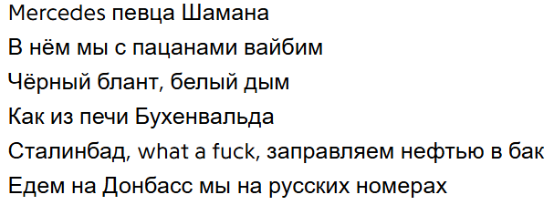 >>25746517 > Замай уехал потому что кто-то на него настучал, я так понял Необязательно конкретно на него. Скорее просто пришли к шобле антихайпа и выдвинули всем условия. Фаллос же с джигли тоже сбежали сверкая пятками из страны. Овсянкин. Но и на замая тоже копали отдельно потому что он более категорично против войны выступал. Мало кто помнит но когда-то поздняков делал пост даже с призывом к травле замая за его антивоенные посты. А славик остался и начал прогибаться, вон недавно с ИРИ сотрудничал > А че значит кинул? То и значит. Теперь замаю приходится на пропитание на стримах побираться > Типа совместные концерты только в германии? Думаешь он отказался бы от совместного тура по всей европе? Особенно учитывая как он пытается копейки тянуть > А так они могут в минус уйти, кто банкет оплатит Видимо рассчитывал что хайп славика вывезет их обоих. А тут обиделся что товарищ не хочет деньгой делиться