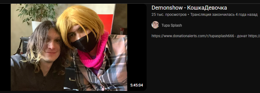 >>25773070 Я проебал видос. Стрим был с Таджисией, в конце пришёл сосед и Дерьмак пошёл его пиздить. Видос Таджисий снимал на свой телефон. Вид из двери квартиры - лестничная клетка, Дерьмак лежит согнувшись на полу, а сосед сверху его захватом держит, Дерьмак орёт рычит, пытается вырваться но нихуя не получается, сосёд говорит "ну че успокоился?", Дерьмак дальше рычит, потом видео обрывается. В треды кидали, так что кто-то кроме меня полюбому помнить должен.