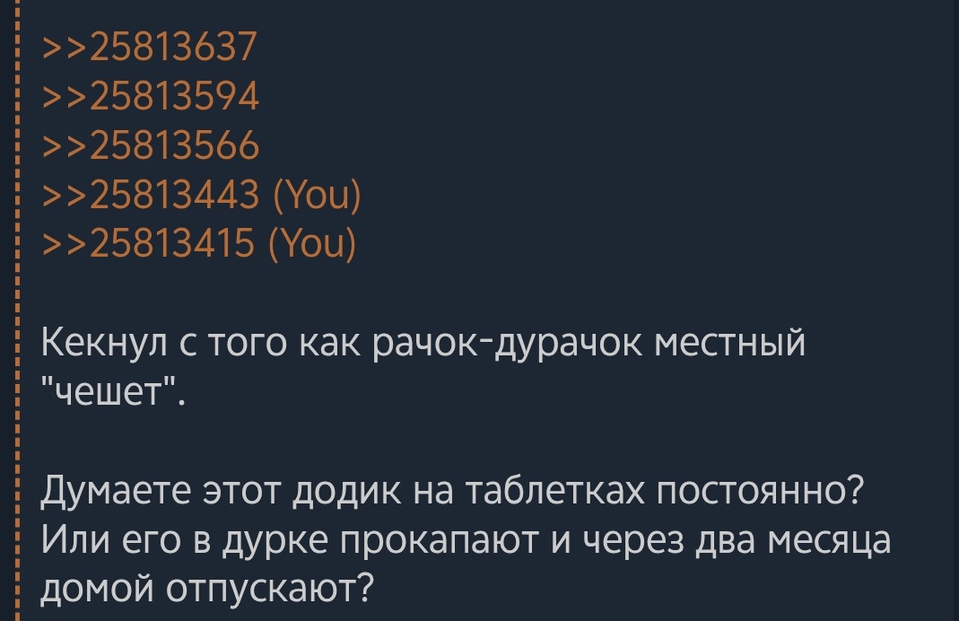 >>25804414 Ты один тут этим говначом одержим, Мелок, заметил? Всем просто поебать на какой-то псевдо-черветред хипстеров-трясунов обоссавшихся и обосравшихся. А у тебя зацикленность шизофреническая натурально. Подумой!