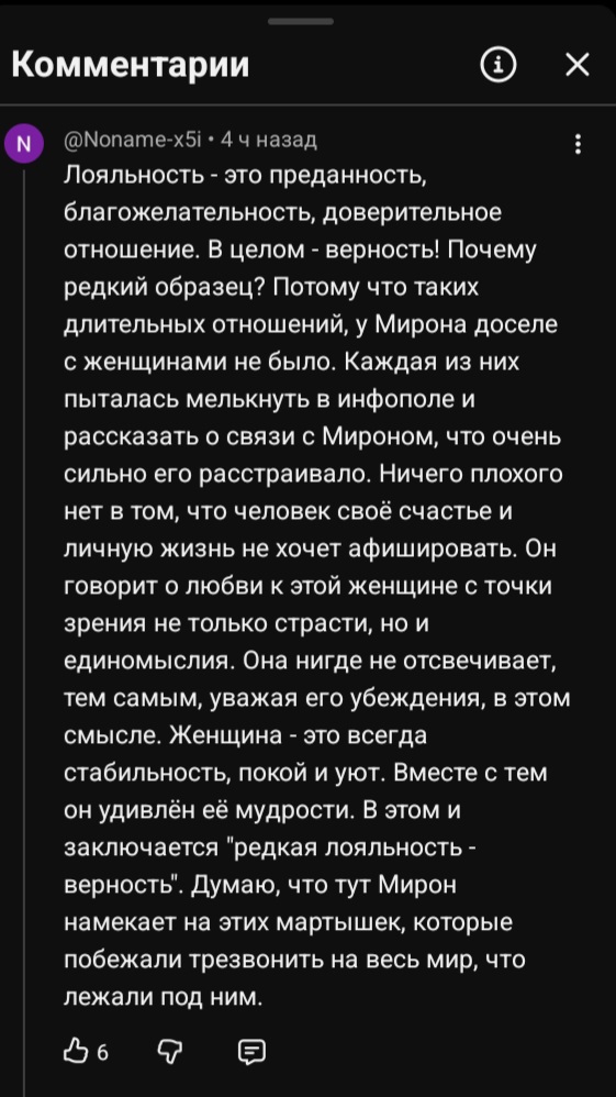 >>25823011 Ты сам ответил на свой вопрос, ему уже не по масти Если ему из каждых щелей везде пишут, что он кроме как баттлом с оксом ничем не примечателен, то нахуя вообще носатого лишний раз тормошить? Он реактором уровнем мама смотрит или нюбергом хочет стать? Всю жизнь прихлебателем быть? Так он может себе позволить им не быть, не то что некоторые его коллеги. В бейслайн бизнесе жопича кольнули тем, что он стример, последние 2 года он не стримит, как вы видите, может щас и правда в шоу на тнт снимается, кто его знает. Непонятно правда, нахуя это ему, может старшие надавили хз Вам не кажется, что уже зашкварно на каждый пук минога реагировать, буквально вместе со стадом какую-то очередную хуйню обсуждать? Он даже в твиттере пукать перестал. Перестал выпускать чисто реакторские треки уровня курьера с топором или мы живем в саранске. И абсолютно правильно сделал, что не стал реактить расследование, ну просто нахуя? Пора своей жизнью заниматься, в чем блять он не прав? Опять же, если он пришествие ориджинал карасика планирует, то наверняка задается вопросом - а кем я хочу, чтобы меня ребенок видел, когда подрастёт? Клоуном типа техника с ютаба или легендой типа техника из контейнера? А смехуёчки и отсылки ко всяким событиям можно оставить для строчек в треках, это более выгодная позиция для него, как артиста.