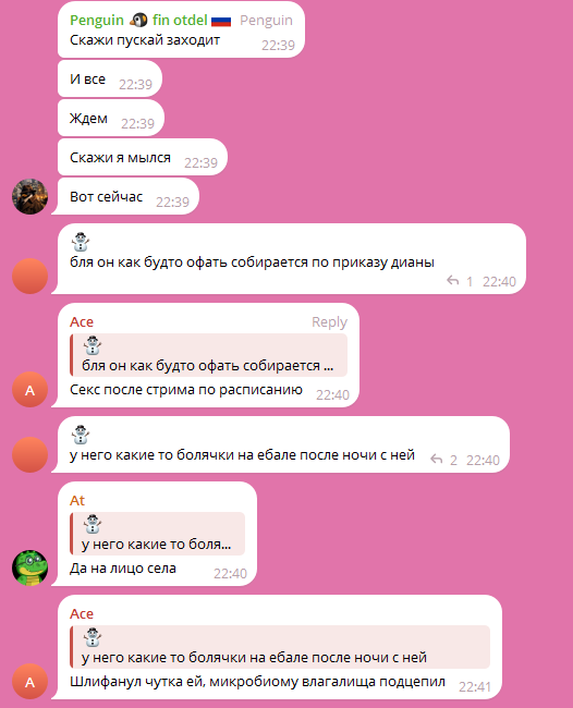 >дав разбаны как раз таки реальные, а не соевые хейтерки отделились и готовы продолжать напрягать тетю шлюху. по факту там серил один чел с ником пингвин, который вызывал им на адрес курьеров и шлюх прям как армия фанфурика вызвала пиццу/роллы круглосуточно на кузнецова 3А, он щас и стоит во главе нового хейтерского чата, значит по большому факту ничего не изменилось кардинально