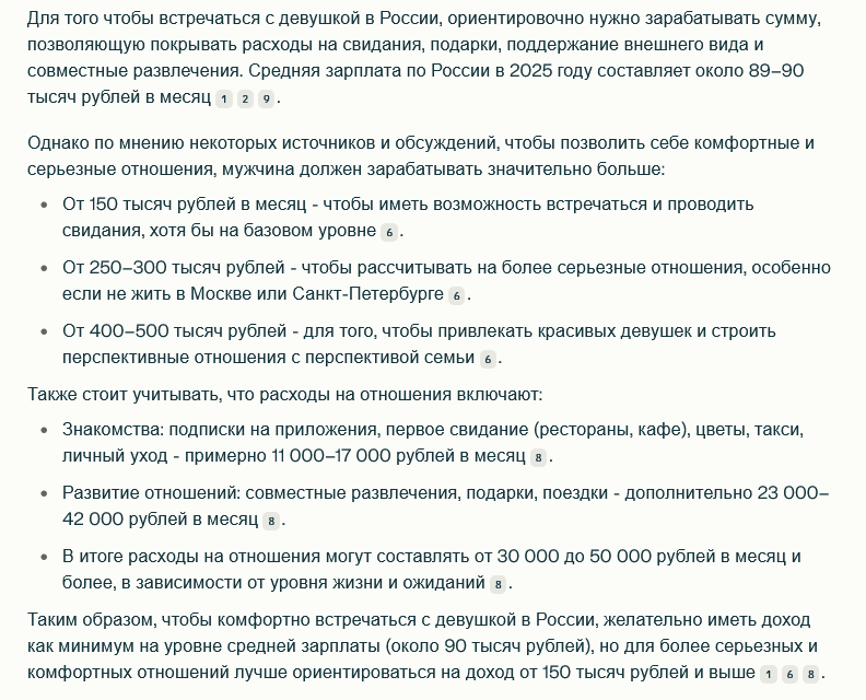 У баб, походу, какой-то внутренний калькулятор секса есть. Веду учёт всех денежных трат. И также записываю все сексы. И вот сложил расходы на бабу и разделил на количество сексов, получилось примерно 4490 рублей 32 копейки за половой акт. Столько же, сколько я платил бы проститутке, только она не выносила бы мне мозги.