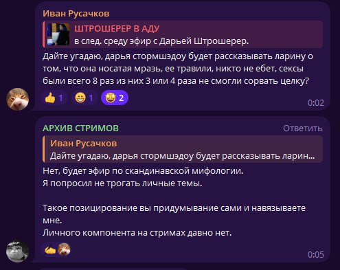 "Да успокойся, Кать. У штрохи пизда очень низко, ее не видно почти, хоть и брухлявая. Нахуевертили нейрокала и радуетесь. Я все это оригами видел в туле, так что не мошни. Штроха как могла пыталась хоть доллар заработать, пока ты жрала сосиски в карлсжунере со своим ненаглядным. А соски у штрохи топ, не то, что у тебя кляксы растоптанные. Я могу и их слить, если хочешь, деточка :3"