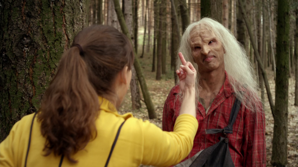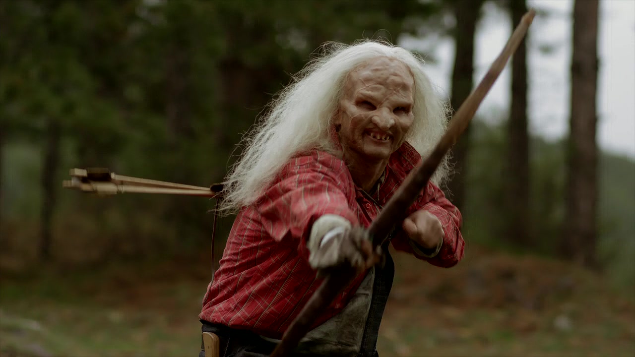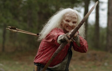 К нему сразу подходят двое ассистентов. Один аккуратно расстёгивает крепления накладного живота, второй снимает массивные силиконовые «сиськи». Грим быстро стирают влажными салфетками. Под всем этим — сухое, поджарое тело и чётко прорисованный пресс.