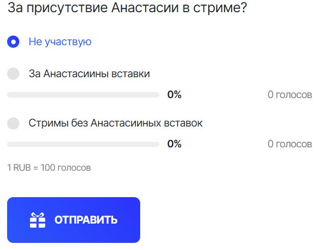 Ахаха. Мочеглоты там лодку раскачивают. Им не нравится присутствие мопсихи. В ответ Петюня делает гениальный ход и предлагает лохам платное голосование через донаты. То есть, вместо бойкота в виде стоп донатов мочеглоту нужно наоборот платить чтобы избавиться от косорылой гучки.