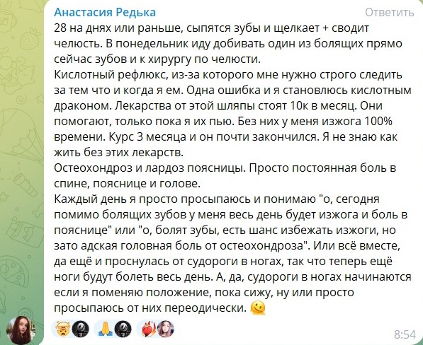 Хз, че вы тут разгоняете. Глянул в тг щя, по мне она вообще специально так надевает шею, а-ля как когда свинявр ведёт стрим, и брухляшка влезает со своими 5 копейками, он тоже делает лицо дебила, пока она высирается. Тут даже в посте ОП эти рожи, как пример.