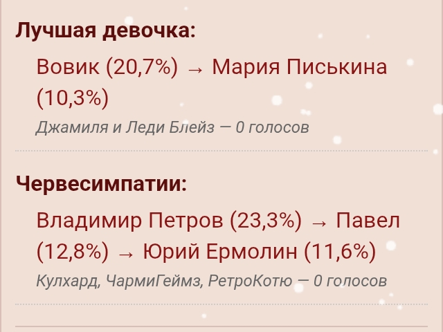 >>25925148 Это даже вдвойне забавно. Помню когда только возникла инициатива об удалении В. из треда, 4мо пыталось парировать тем, что В. нужно оставить, потому что он занял 1 место зрительских симпатий а червеавардсе. Даже тогда это звучало смешно, а теперь мы видим "массовую" поддержку 4ма воочию. 5 голосов иххихи )))