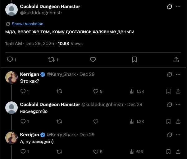 >>25926581 Я тоже с этой хуйни заорал в голосину просто когда эта дуремашна начала писать в соц. сетях что у нее деньги с продажи хаты и постила фотки крипокошелька.