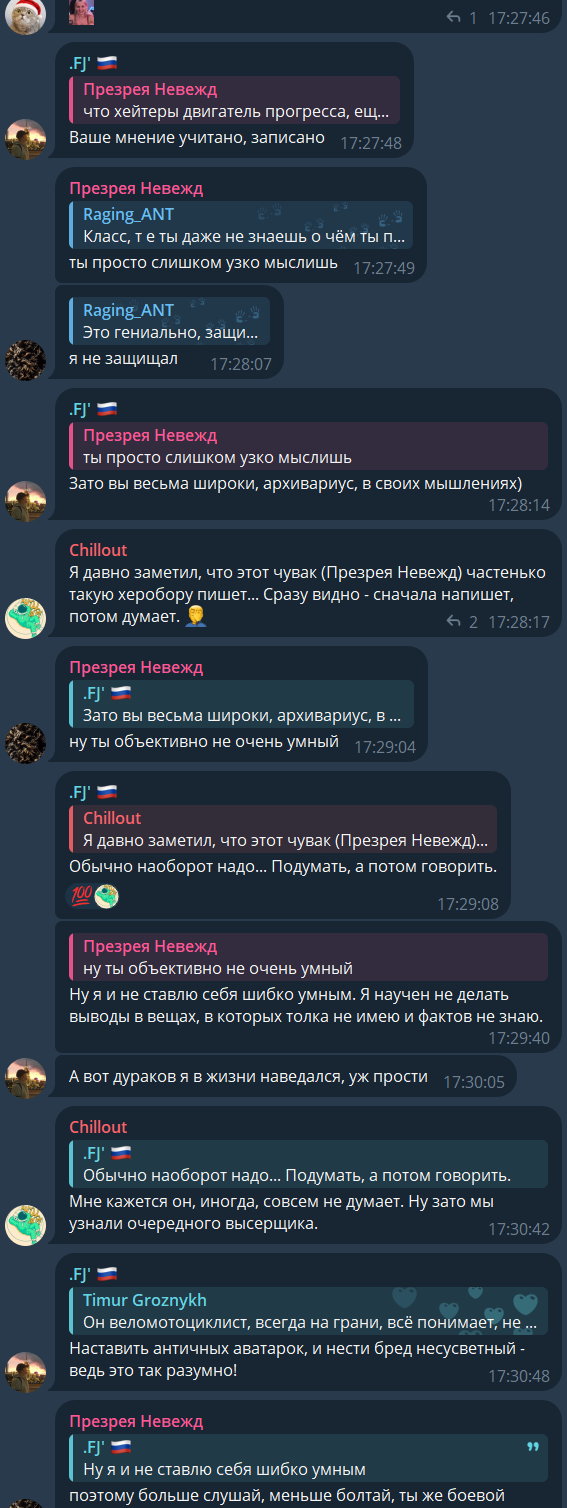 >>25933706 >ты обоссаный симп Чего порвался? Начинал как нормальный человек, а закончил как обосранный дурдомовец. >всегда говорила о том, как ей неприятны те ролики Там шла речь о качестве этого контента, а не о том, что это плохо. >Факты против домыслов Какие факты? То что ей было похуй на закон и она вообще не задумывалась об ответственности, а потом в 2023 так прижало, что потёрла всё что могла, даже историю чата? Или ты думаешь она выкладывала бы такие ролики, зная про ответственность за них? У тебя перманентный аутотренинг, палата натуральная. >ты проебал Я и не пытаюсь победить, в отличии от тебя шизофреника. Это ты всё в какой-то неравной борьбе с воображаемыми хуйтерками находишься. Я тебе пишу очевидные вещи, максимально понятно и объективно, без симповских шизоиллюзий.