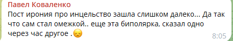 - Слышь чмодьё ебаное, думать не смей мою прошлую бабу шипперить. Ну ка быстро написал пост что между вами ничего не может быть. - К-к-к-как скажешь господин Гитман