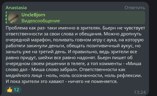 Мне лично похуй что она ебется с гитманом если это правда, просто нахуя гасится всячески скрывать, тем более столько лет. По моему донаты симпов это уже не основной доход, тогда зачем всё это? Тока создание вопросов и хуйни вокруг себя