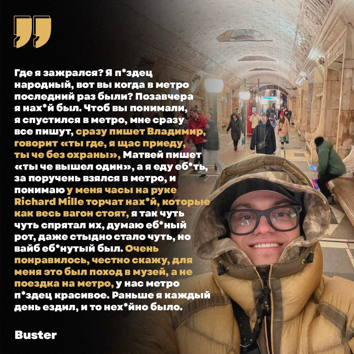 >>25956359 Я уссался с его спича сейчас на стриме, где он рассказывает как тяжело быть взрослым и что нужно вставать и что-то делать. Это просто пиздец, как смешно слушать, что миллионеру так тяжело встать, позавтракать сходить прогуляться или в бассейн а потом садиться играть в игрульку и лутать сотни тысяч в месяц. Пожалейте бедненького стримера