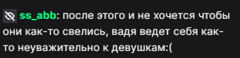 Единственное от чего у Наташи реально тильт и неловкость это от того, что про нее постоянно спамят. Реально уже делают из Вади и Наташи собачек которые должны делать то что чату хочется