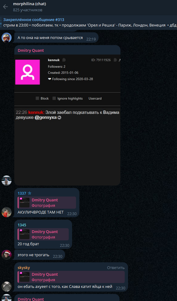 >>25962054 заебал его спам про наташу, когда на стрима дохера других людей. что не так? ты думаешь она будет рада когда ей только про него спамить будут? я говорю челы посходили с ума уже и это не норм, настолько помешаться на наташе и ваде и ебать им мозги