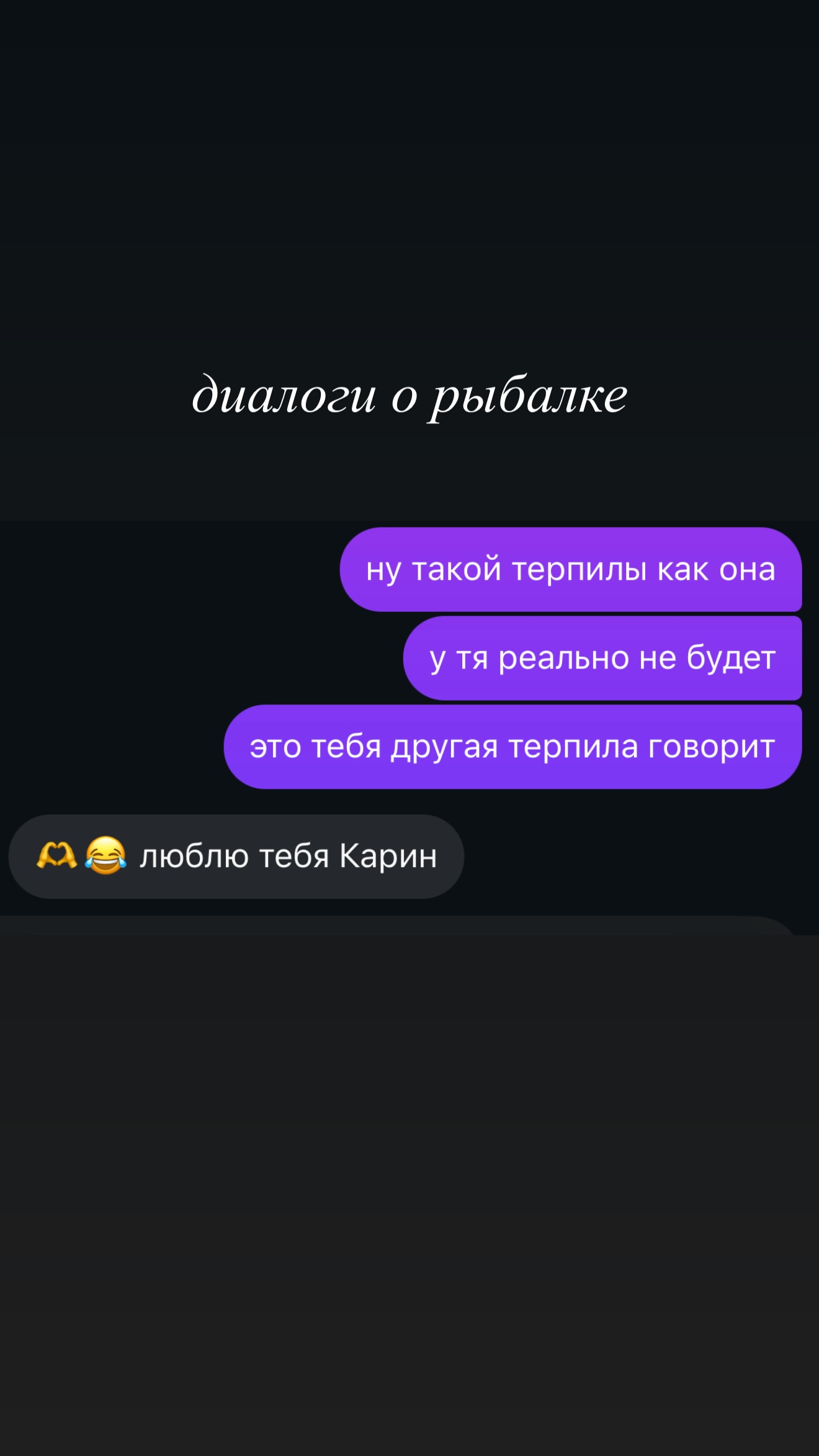 >>25875727 >Знаю этих двух лично по бывшей тусовке, никакой ебли между ними не было Дак а с чего верить твоим словам, тут любой мимокрокодил может написать что-то в духе "я знаю инсайд..." и понеслась. Просто пока что факты доказывают обратное, в мае месяце Шпак и Резник вместе затусили, Карлинка светилась от щастья и снимала тиктоки про влюбленность и отношаш, да и Тоня выдавал недвусмысленные намеки по типу пикрил. А потом к концу лета они по всей видимости разошлись, и пошли грустные тиктапки от Шпак про измену и изменщика. И только перед недавним концертом Рэдиохед они снова стали общаться. И еще, если это "просто дружба", что мешало Шпак на летнем стриме сказать, что Резник ее просто друг, когда ее то ли в чате, то ли в донате спросили, а она молча проигнорила, как и все вопросы про личную жизь. Хотя по ведению ее тикток аккаунта можно просто летопись вести, когда Каришка влюбилась, когда рассталась, когда в депрессии и все такое, ибо это выглядит более реалистичным, чем подобные инсайды от мимокроков.
