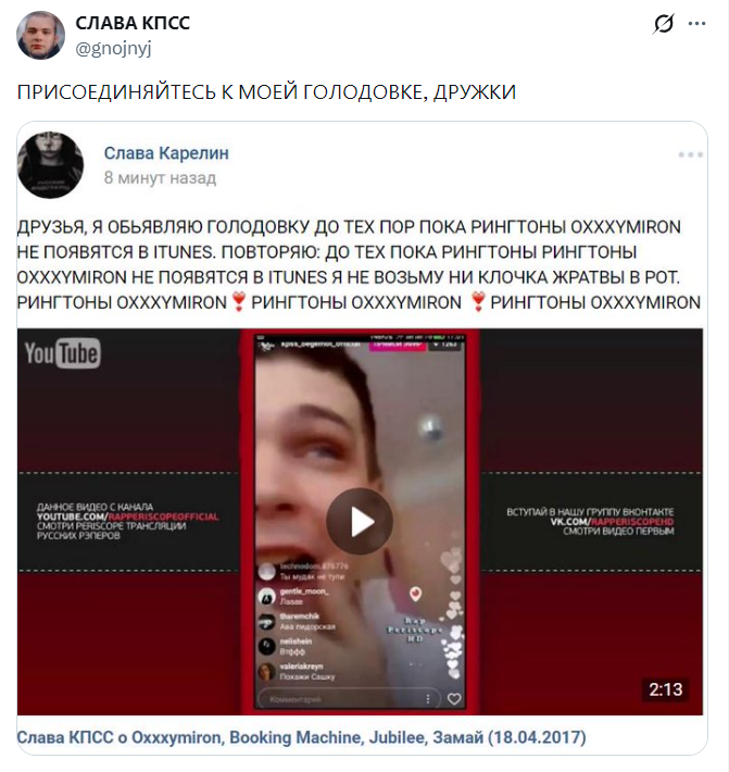 > Я уже давно коуплю что Славка жопич вечно в качелях. Затрагивая только сольное творчество: