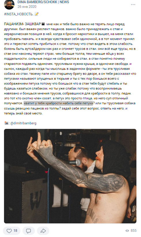 И еще к новостям мб пакет выложил подкаст у себя в тг где отметил некий форум где обсуждают слухи о нем. Будем продолжать копать грязное белье на репперков чтобы им было не скучно жить. Быть добру! Ну и еще он негативно высказался об интернете что тут слишком токсично и жопу ему не лижут, а вот на ирл квартирниках его хвалят и он заимел полезные знакомства. Зазвездился братик, отказывается от корней, как и славик жопич...