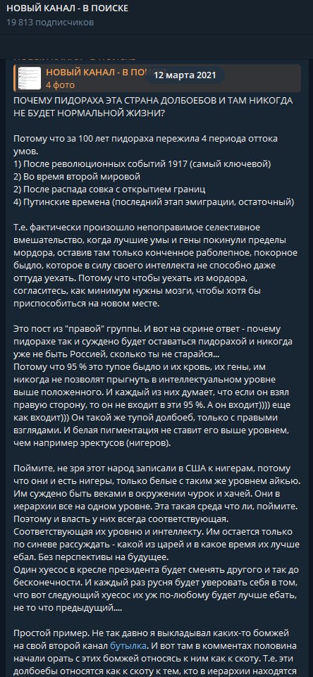 >>25984113 > Вот ты типичная пидораха > И да, Потапенко плохой, потому что слово "хохлы", как и "русня" - имеют сильный политический окрас. > Слово "Пидорахи" это сленг с борд, так что малораспространённый. Чудеса ментальной эквилибристики. Стоит только усомниться, что Криштофф наш русских патриот он тебя сразу называет пидерахой. Ну ладно, раз мы говорим, что это слово не имеет окраса потому что его не форсит Поздняков специально для тебя я нашел скрины из его старого канала.